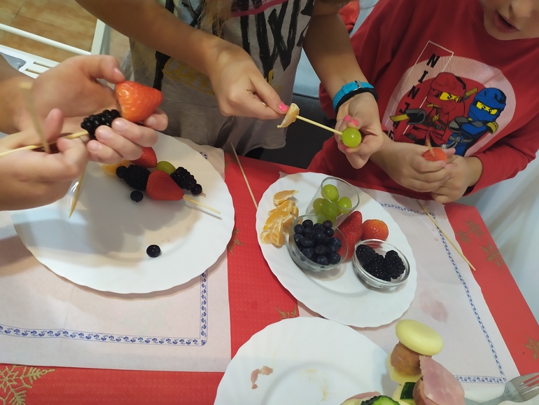 Делали мы не ежиков, а фруктовые канапе. Всем очень понравилось их делать!