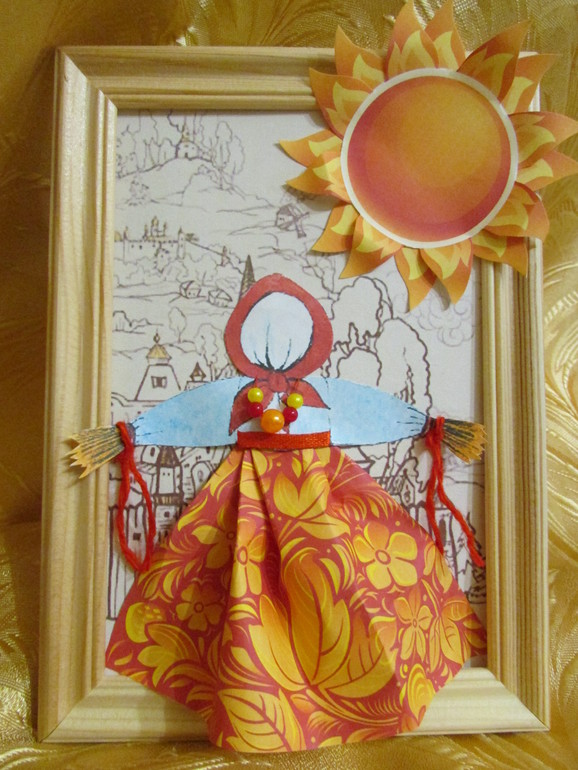 Вот как-то делали объёмную картину. Она до сих пор у нас храниться в коробке с масленичными сокровищами..
