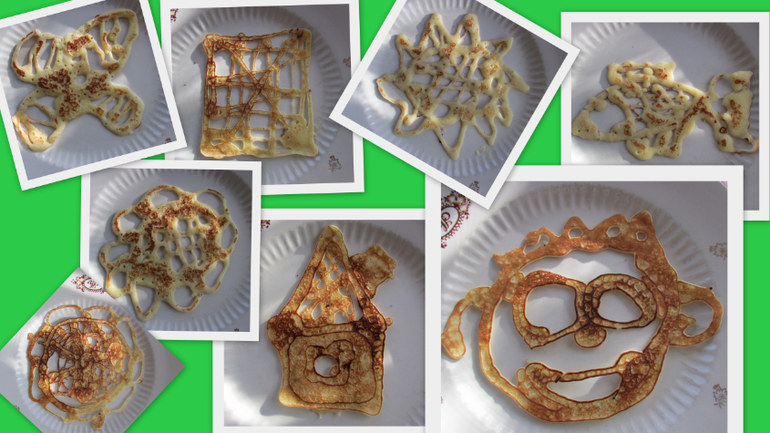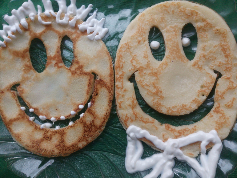 Любим мы блины, и печь и кушать. Тем более , что они всегда у нас получаются необычные и весёлые...