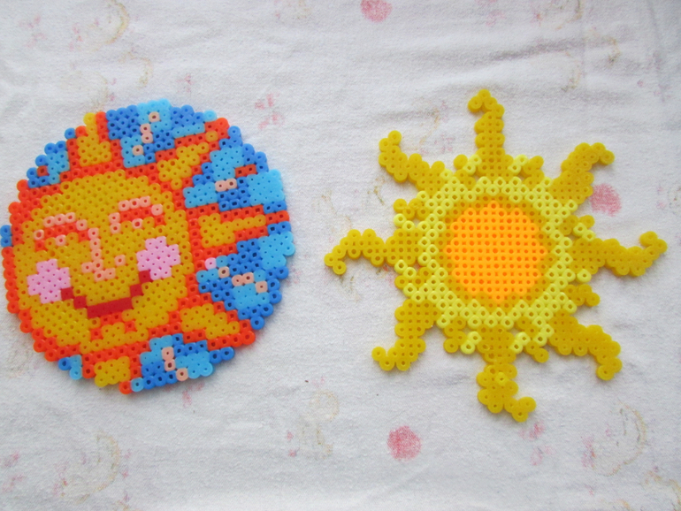 Солнышки из мозаики, сделанные детьми...