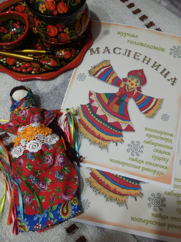 Наша самодельная кукла-мотанка, несколько лет живёт и радует нас и мои самодельные журналы к Масленице с головоломками для старших детей...