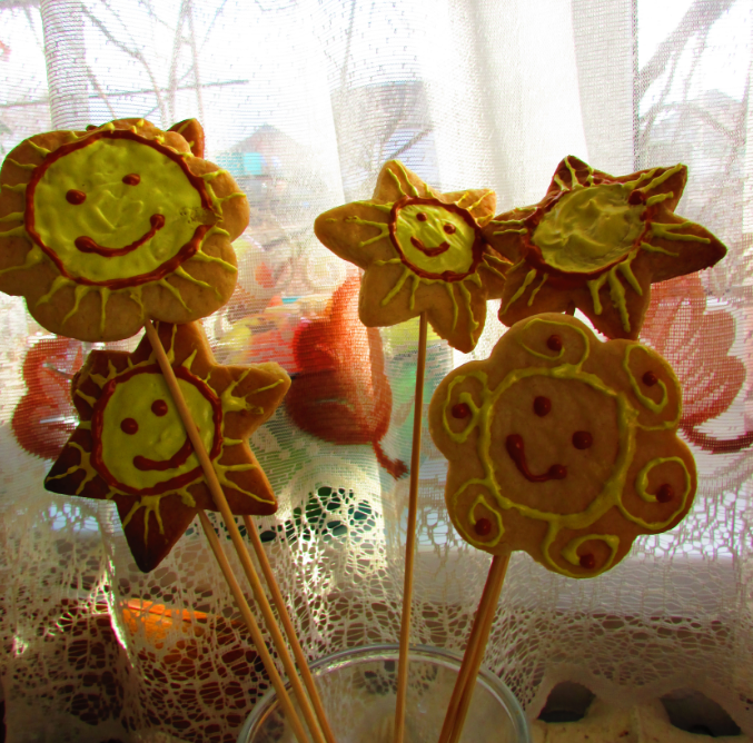 Вот таких солнышек мы мастерили несколько -дарили друзьям...