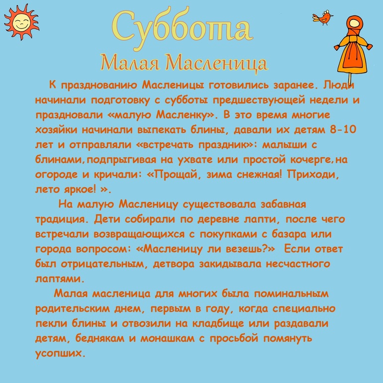 По нашему календарю начали мы встречать Масленицу с субботы...