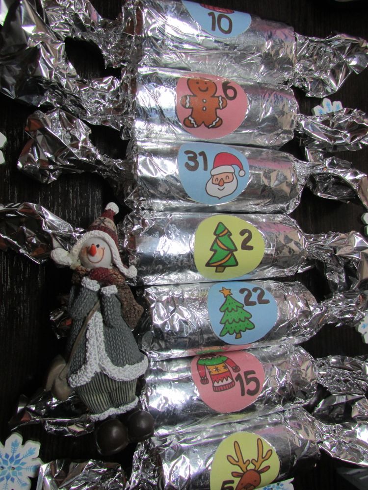 Обернули их фольгой и украсили распечатанной картинкой с числом.