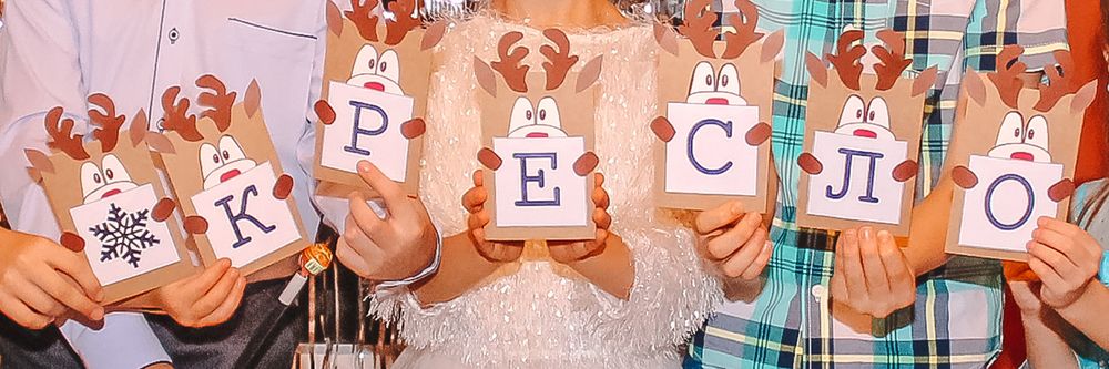 А вот олень Свен спрятал свою часть сюрприза и оставил нам подсказки - каждому даю открытку с рогами - на одной стороне цифры, на другой буквы, если выстроится по порядку, то получим слово - в зависимости от количества гостей, например слова: рюкзак(6), подоконник в зале (10), прихожая (8), пылесос (7), цветок (6), у меня в итоге получилось слово «кресло»- внутри баночки с водой