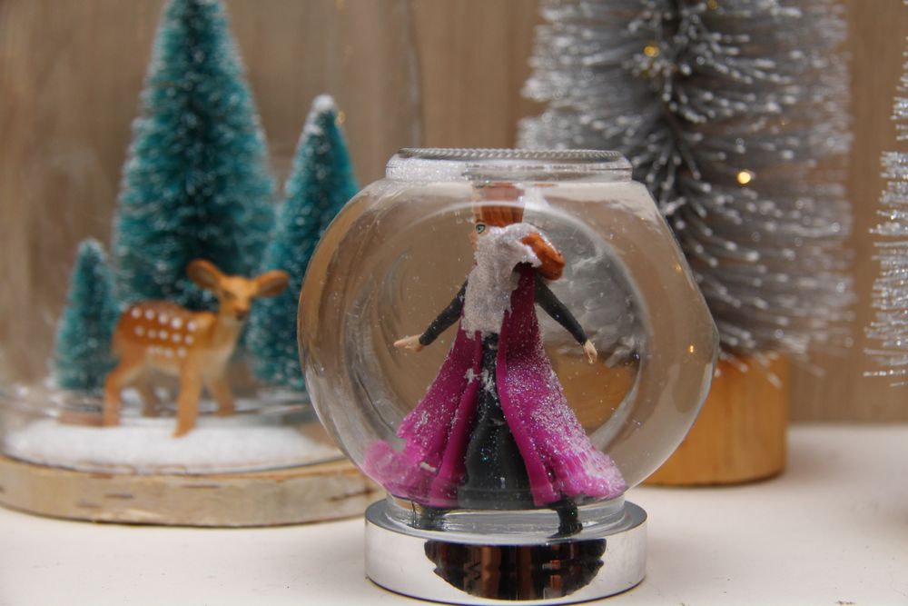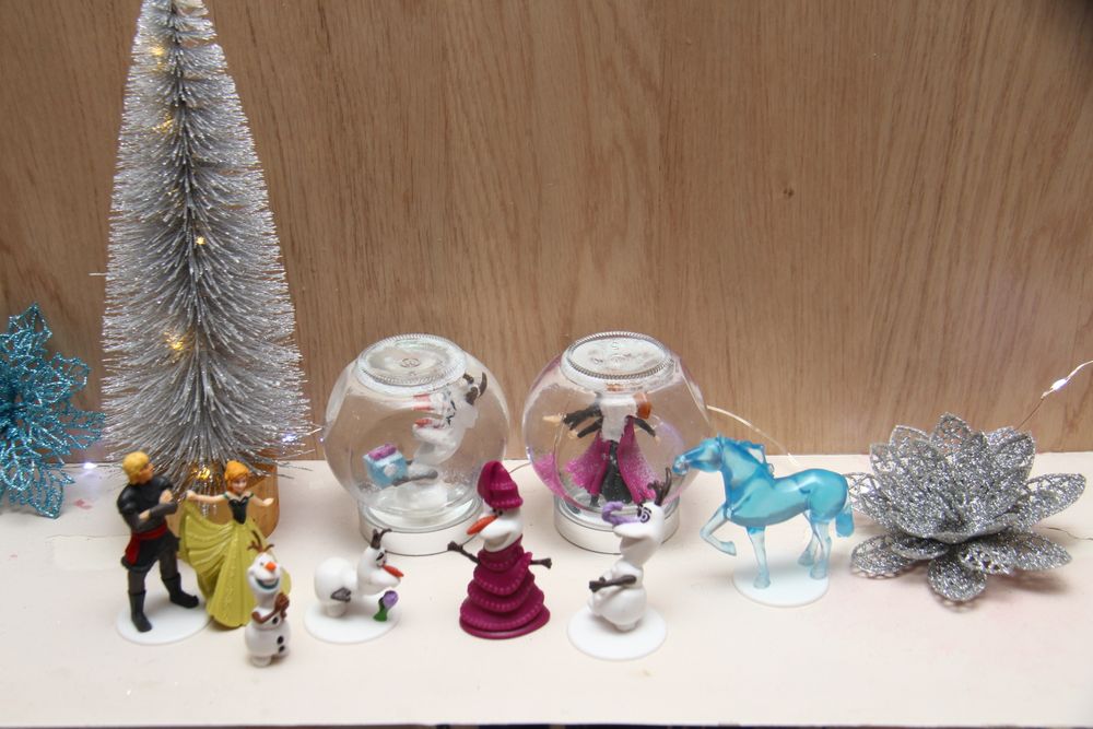 Я разделила вечер на 2 этапа - дети перекусили и были рады вновь окунуться в приключения - во второй части нужно было собрать элементы для снежного шара-блёстки, глицерин, баночки и фигурки.