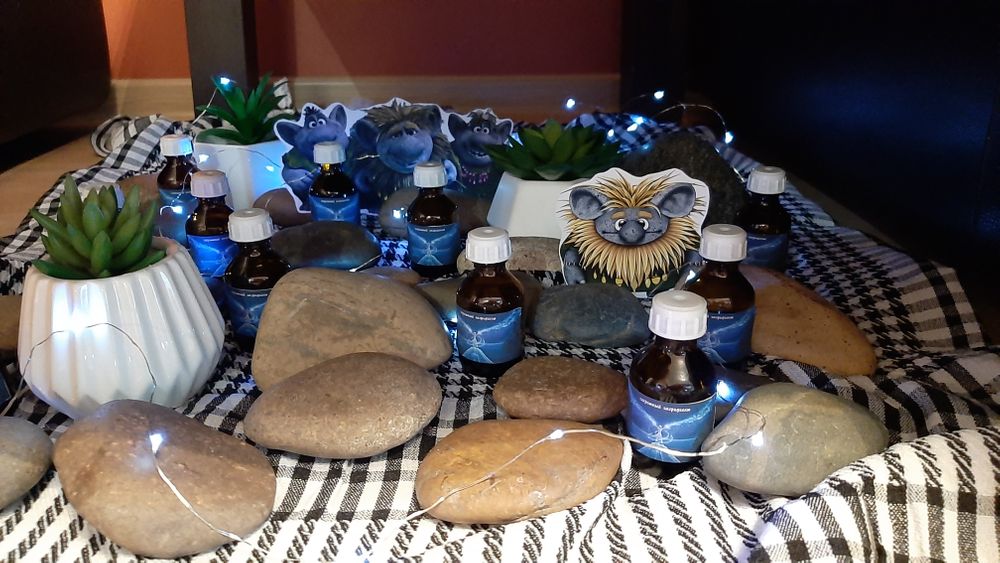 Вторую часть спрятал Кристоф, он дружит с троллями и поэтому мы отправимся в долину камней, туда где они живут, только нужно не разбудить их - давайте по одному вы пойдете в долину камней и принесете волшебный ингредиент! - внутри глицерин (долина камней была под столом, накрытым скатертью, никто не заглядывал внутрь, поэтому они с интересом залазили и видели вот такую красоту)
