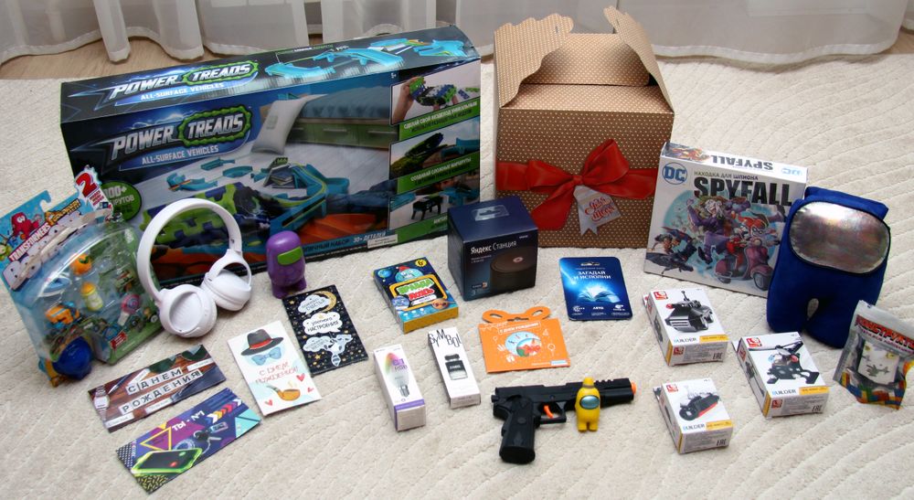 Игрушку- вездеход сын попросил сам,много в этот раз подарили денег, сертификатов, была также туалетная вода, настольная игра, беспроводные наушники...