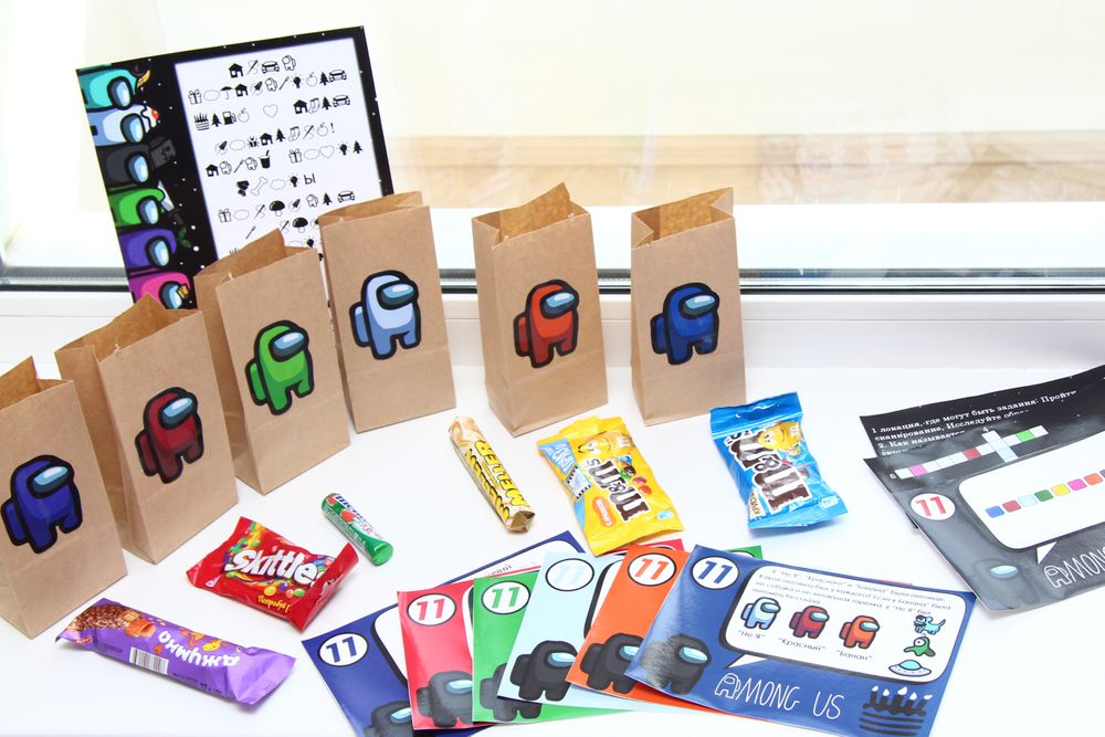 Зато я приготовила небольшую игру - поиск подарка! Идея игры Амонг ас - есть члены экипажа и предатели, нужно выяснить кто предатель - что-то похожее на мафию. Поэтому у меня было 6 человечков, 2 из них - предатели.