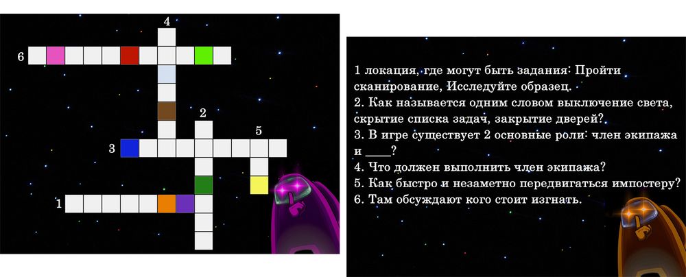 вопросы в кроссворде были связаны с игрой, придумывала сама. Разгадать можно только если соберешь все подсказки - найдешь всех предателей. Разгадав кроссворд - заполняешь карточку с цветными квадратами и идешь искать свой подарок на подоконнике!