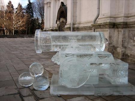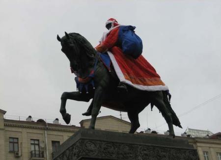 Новый ГодВ Кремле выставлена его миниатюрная копия изо льда, а также памятник Юрию Долгорукому нарядили в Деда Мороза.