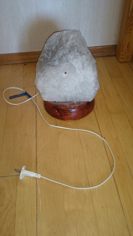 . Большой кусок соли с лампой накаливания внутри. Давно не включала. То ли лампа перегорела, то ли что-то не контаЧит. Дырочка в середине - это так надо для достижения эффекта соляной пещеры.