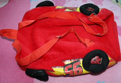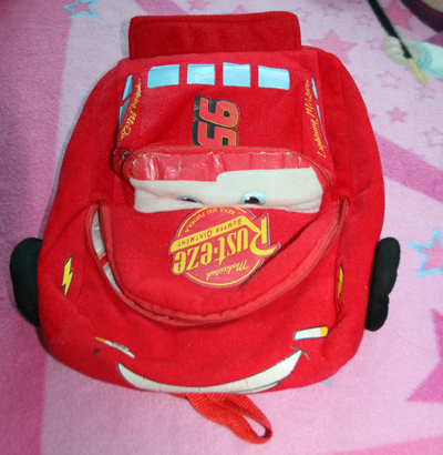 В подарок к костюму рюкзак "Молния Маквин", немного стерт рисунок, нужно заменить молнию