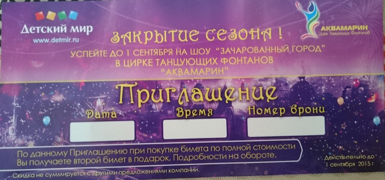 Билеты в Аквамарин можно получить бесплатно,на любую дату.Пишите.