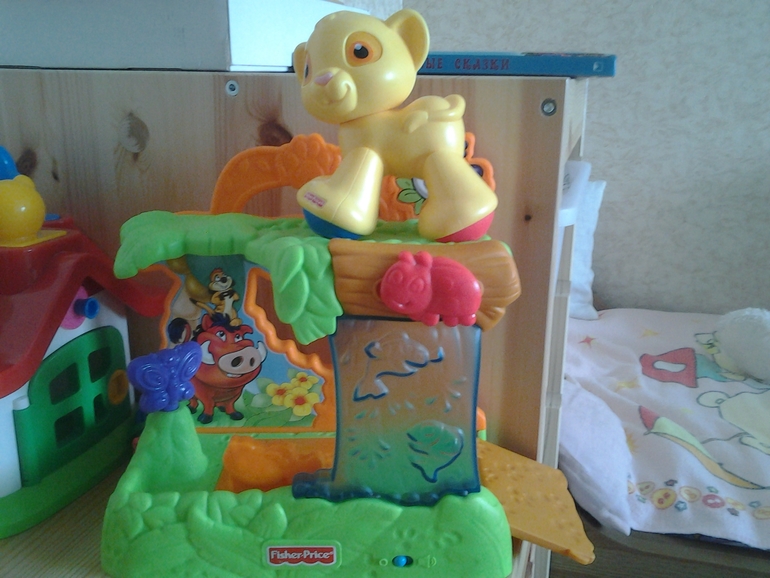 fisher price, музыкальный домик и львенок,у которого ножки трещат, все работает,все в идеале, немного потерта надпись,видно на фото, экв. 1200 руб.