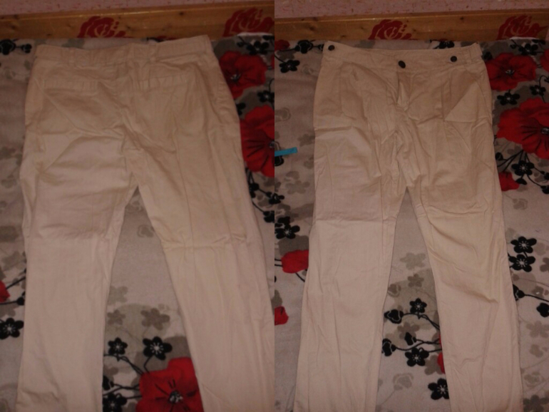 Бежевые штанишки,хлопок.Размер 42-44. Заужены к низу. Цена 150 рублей