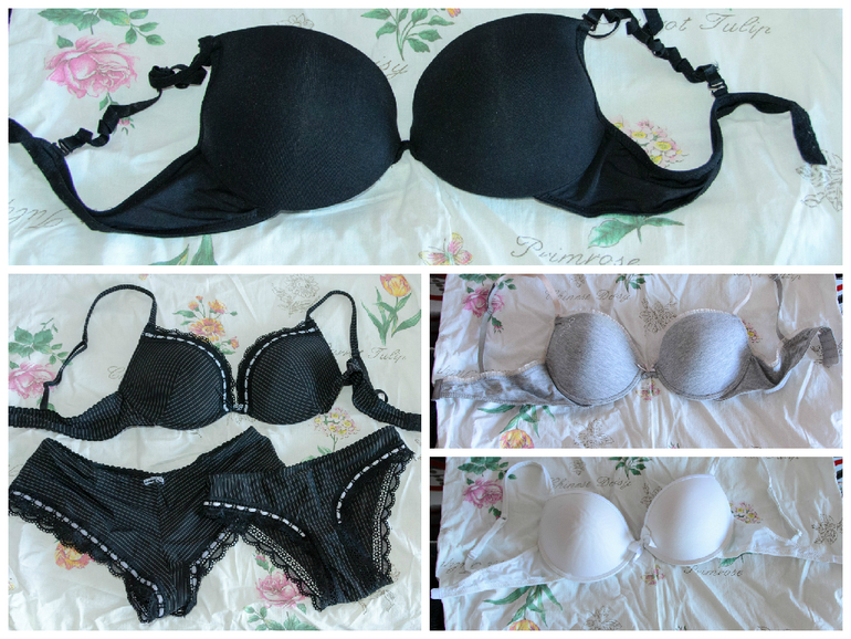 У бюстгальтеров все чашки с поролоном. При покупке девочка сказала, что все лифы новые, только серый меряла 1 раз. Я меняю их как бу, т.к. сама меряла, и они без бирок. Состояние у белья отличное, кроме указанного нюанса у серого. Все белье прополощено в спец.средстве для обработки.
