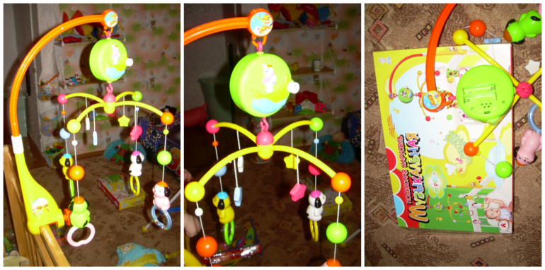 Игрушка над кроватью,барохлит музыка и нет крышки от батареек. 100руб.Не играли.