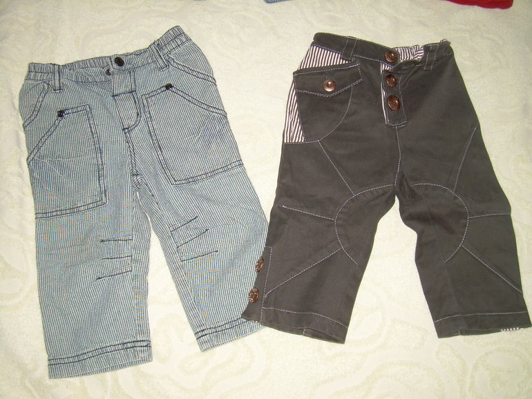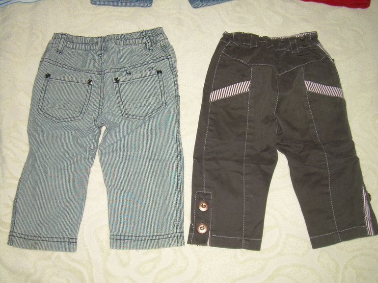 Футболок нет. Джинсовый комбез на годик 150 руб(одет несколько раз),брюки на годик р-р 80 по 200р.Одеты несколько раз на праздники. Серые "knot so bad" легкие,коричневые "Ё моё" плотные .