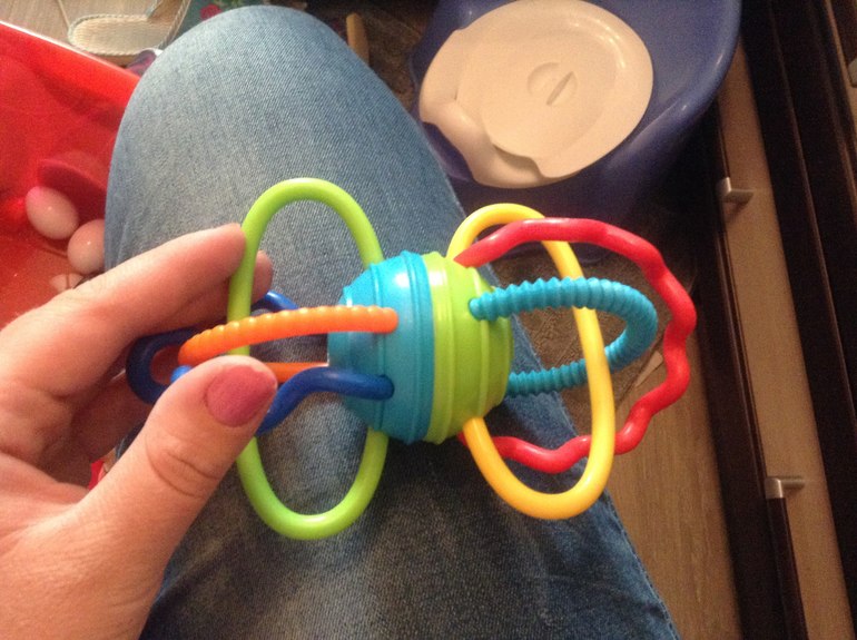 Крутилка, из одного набора с мячиком экв 300 она крутится трещит удобна для прорезывания, безопасно можно грызть. Мы в нее не играли, нам подарили это очень поздно новая. Там фирма крутая какая то крутая заинтересует напишу.