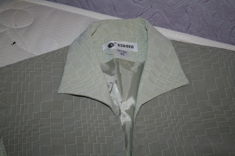 Костюм тройка с длинной прямой юбкой. Ткань немнущаяся. В пиджаке на внутренней подкладке по спинке разошелся немного шев (зашиваемо). Размер 48-50