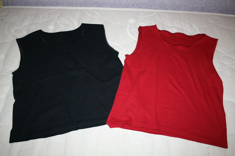 Трикотажные майки -2 шт, хлопок. У красной отошел подол кое где. Размер... хм.. тянутся 48-50.