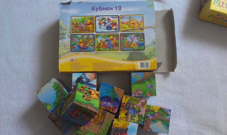 6 Кубики Винни Пух. 6 картинок . Коробка потрепана. Экв 100р.