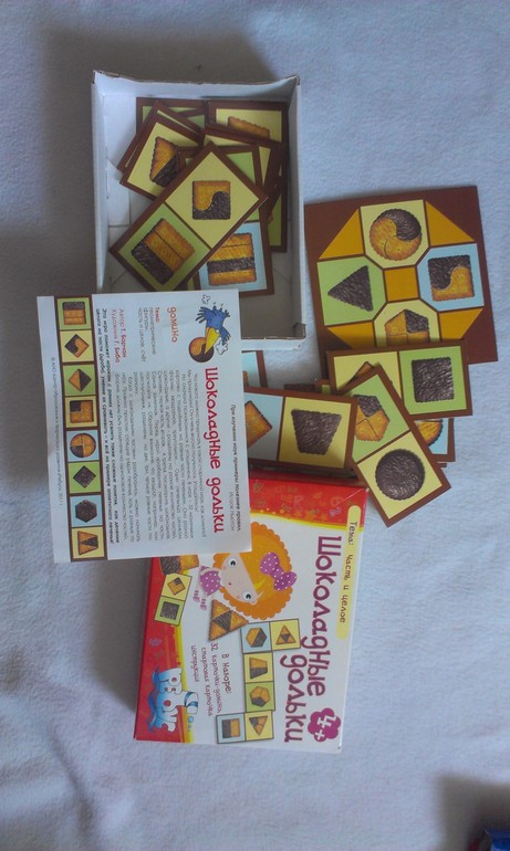 2 Домино Шоколадные дольки. От 3.5 -4 лет. Приближает к пониманию дроби. Печеньки ставим друг к другу так,чтобы совпадало количество долек,не зависимо от формы. Экв 150р. В идеале.