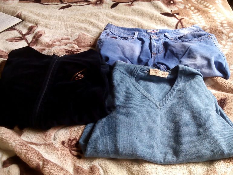 Джинсы-31/160,коф.синяя 38/97, кофта на молнии элька,куртка черная xxl,жилетка xxl,куртка коричневая170/88а