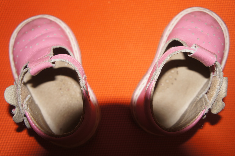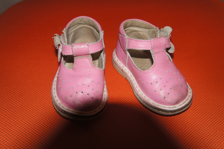 Сандалии розовые, кожаные. на первые шаги. По стельке внутренней - 11,5 -12 см. куплены в Беларуси.
