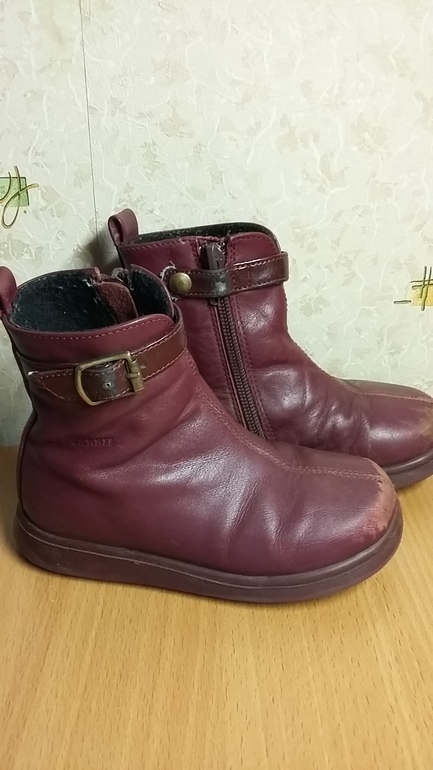 Фото 3: Сапожки "Squirrel", демисезон, 25 размер, бордовые. Верх - кожа. Внутри - тонкая шерсть. Молнии, замочки целые и работают. Состояние хорошее, но сильно потерты мысы.