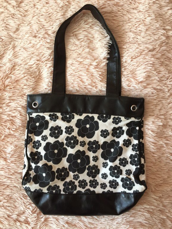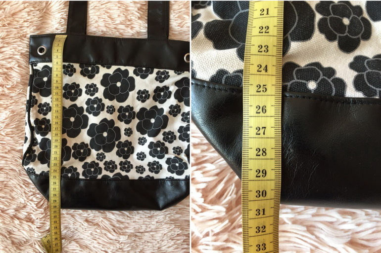 6. Сумочка черно-белая, из текстиля и кожзама, на подкладке, застегивается на молнию, внутри кармашек на молнии и для мобильного, размеры на фото, б\у, в хорошем состоянии