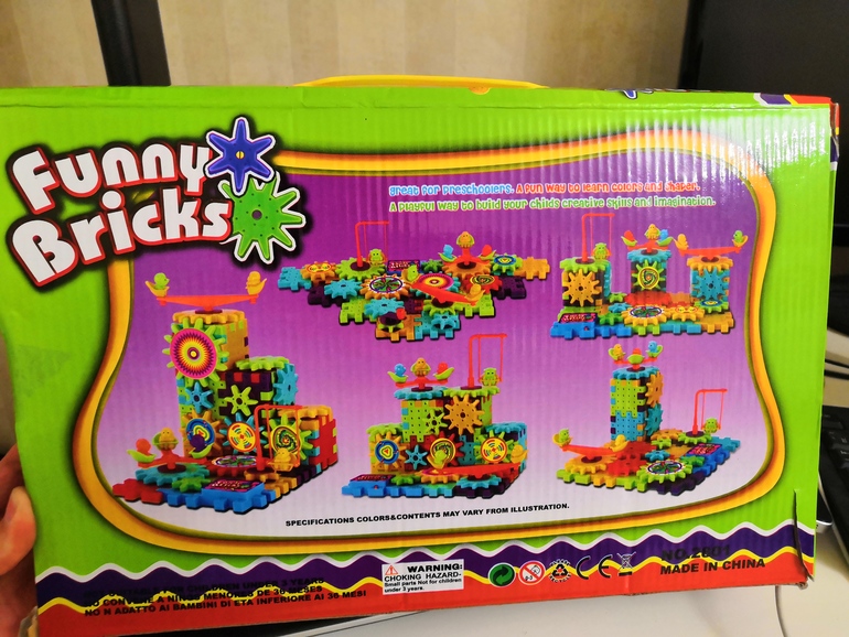 2. Конструктор с шестеренками - не хватает несколько деталей. Изначально был недокомплект плюс сами потеряли (не знаю точно сколько деталей не хватает)