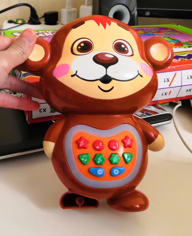 1. Мишка сказочник - отломалась передняя часть ножки, на функционал не влияет. Рассказывает сказки Чуковского.