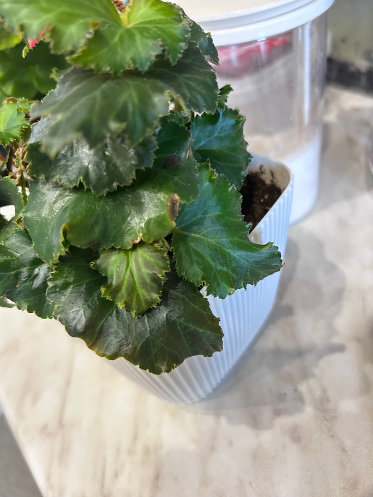 Здравствуйте, подскажите что на листочках бегонии появилось? Это похоже на солнечный ожог или это болезнь? Нужно ли обрезать эти листочки?