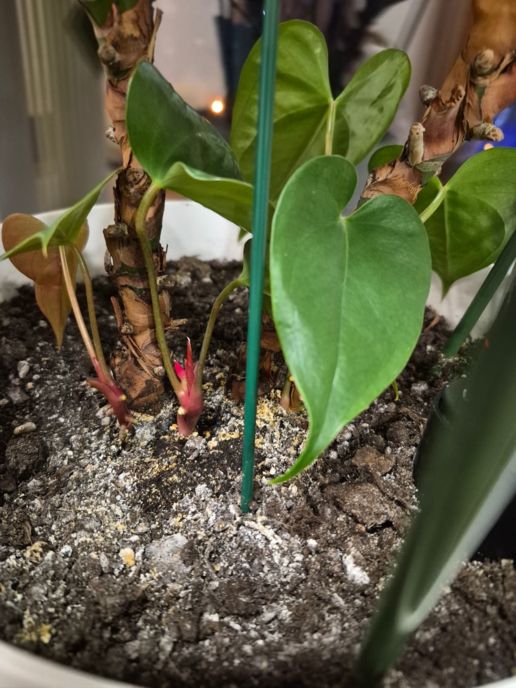 Подскажите, пожалуйста, что это может быть? Пересалила антуриум в другой горшок, тоже с автопрливом. Ему всё нравится, начал активно расти, пускать новые цветы и лаже вот у корней новые побеги. А на земле вот такой налёт образовался. Что это такое и что с этим делать?