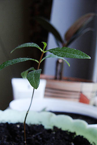 ну не манго и не авокадо точно)))) там косточки просто огромны а этот очень худенький и мелкий. из больших косточек начальные листья по форме косточки - там на пол моей ладони будет. а этот размером с ветку миртового дерева.