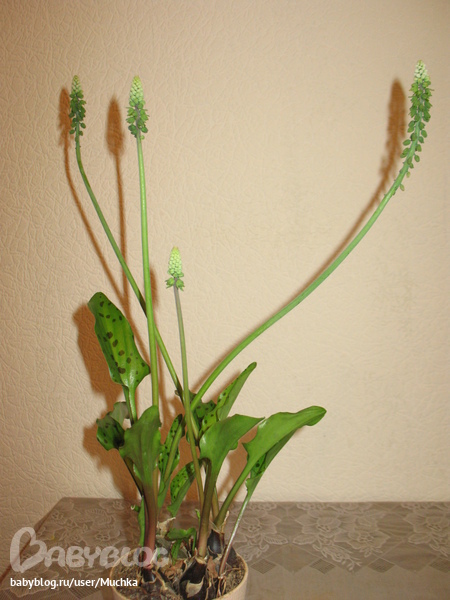 Еще щучий хвост удивил - зацвел. Цветение вживую наблюдаю первый раз в жизни - до этого только на картинках видела. Цветы мелкие, воздушные когда раскроются и пахнут удивительно - приятно, не хуже духов)))