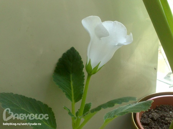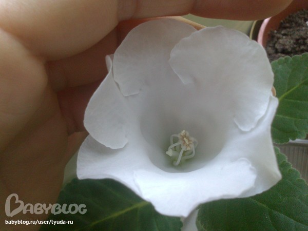 Фиалки/ГлоксинииЭто моя первая "полноценная" глоксиния! Она простая, ослепительно-снежно-белая, но от этого еще прекрасней!