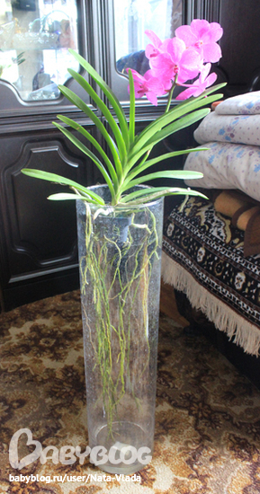 В период роста можно подкамливать ванду удобрением для орхидей в 1\4 или 1\2 концентрации на каждый полив. Раз в 4 месяца желательно замачивать корневую в растворе хелата железа.