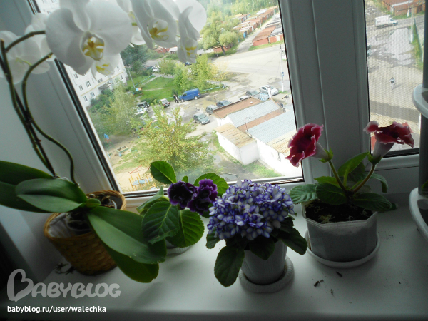 орхидеечка почти год(с октября )цветет)) и фиалочка шапка обалденная!ну и тетушкины глоксики конечно))