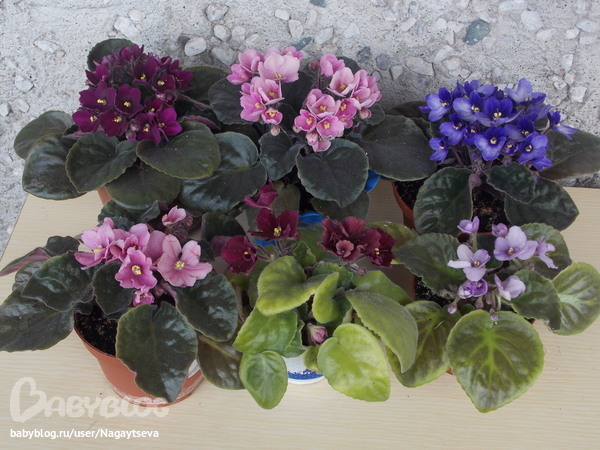 Это промышленные сорта....Сомнения лишь вызывает бардовая фиалка в белом горшке с синим рисонком внизу.