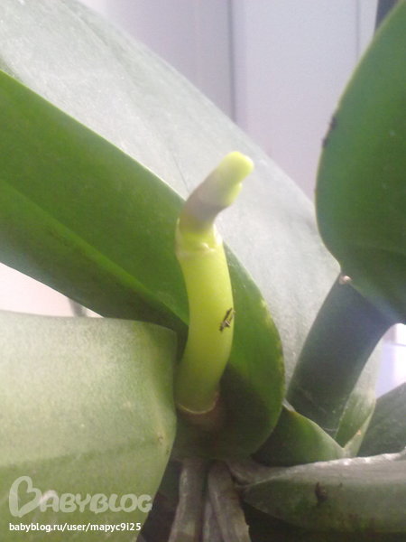 Орхидеидевочки я новичек в выращивании орхидей,есть у меня 2 цветочка,один не цвел с января,цветонос засох,так она у меня и стояла,а вторая без цветов 1.5 года уже,но летом на ней появилась детка,а сегодня смотрю и что я вижу,