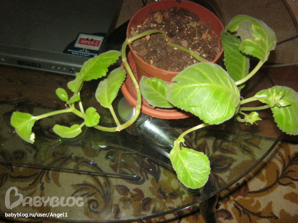 7-на глоксинию похоже, но такое ощущение что ей темновато-она не должна так вытягиваться. Осенью обрезают все листья и коршок с картошкой убирают в темное место и поливают понемногу раз в 2 недели (у меня они зимуют в шкафу где я храню картофель)