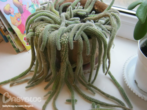 Спасибо большое! Где б узнать названия кактусов... Надо порыться в инете)))) Фикус тот продуло с открытым окном зимой, он сразу весь осыпался, теперь восстанавливается. А вот та, что глоксиния, она была с цветами и большими листьями, похожа на фиалк ее еще говорят надо поливать в поддон. Потом отцвела и стала расти, вытягиваться. Мне еще говорили, что ее на окно нельзя ставить. Это подарок был))) Правда я ее зимой не резала. А кот это алое остистое ест, не знаю уже что и делать. А его как поливать? редко да?