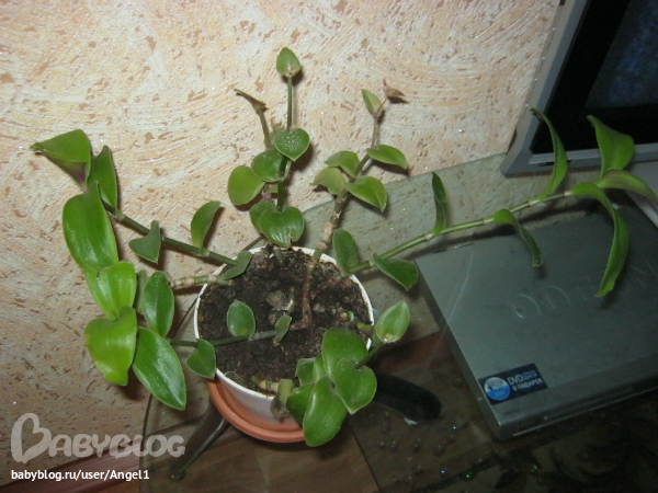 А это точно она? Я ее как то сверху полила, она прям сразу загнулась)). Она цветы дает, такие розовые, пустые внутри, как колокольчики большие... Она?