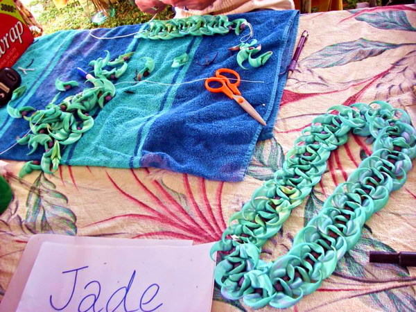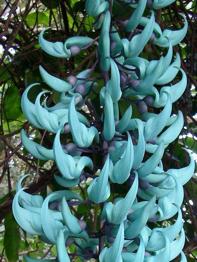 Из него местное население по традиционному гавайскому обычаю делает фантастически красивые леи - цветочные гирлянды, которые носят на шее.Нефритовый цветок очень для этого подходит – остается просто соединить в леи соцветие, украшающее лозу дерева.Зеленовато-голубой цвет нефритовых цветков кажется искусственным. Невероятно, но это их природный цвет.