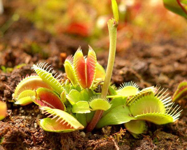 Dionaea muscipula Это самое знаменитое растение-хищник на североамериканском континенте. Размер взрослого растения не превышает 15 см, но при этом оно легко ловит и усваивает комаров, мух и других насекомых – мухоловка способна захлопывать листья за одну десятую долю секунды.