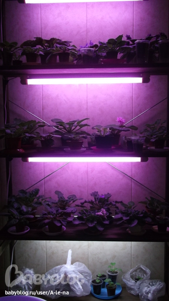 Фиалки/ГлоксинииДолго я мечтала остеллаже да еще и с подсветкой! И наконец-то у меня такой появился.Уже почти все полочки заняты.Скоро начну мечтать о втором!!!