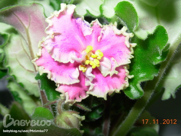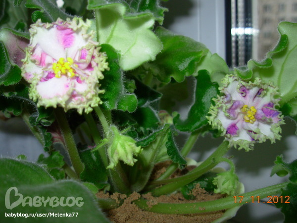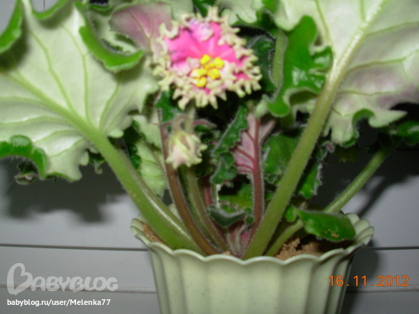 SOS! Помогите цветику!Взяла листик, выросла вот такая странная фиалка, это ее первое цветение, от 1 листика - 2 детки - одна из них такая фото, другая розовая - но тоже непонятная...пока не раскрылась...Таоке ощущение, что она мутировла..или есть сорт такой...не понмю уже какой расцветки была фиалка...